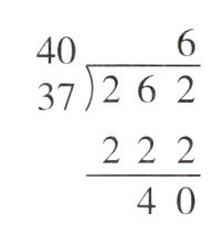 $\begin{array}{r} 6 \\ 40\enclose{longdiv}{262} \\ 222 \\ \hline 40 \end{array}$$ 准确商($