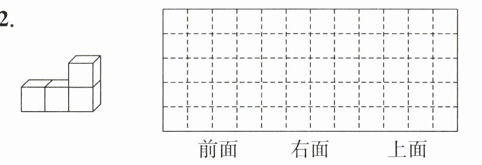 (2)从右面看这三个物体,形状( )。