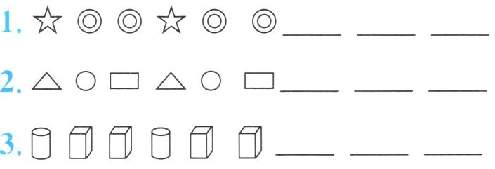 1. ☆ ◎ ◎ 2. △ ○ □ 3.略