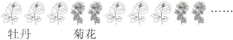 想:每( )朵花一组,每组有( )朵牡丹,有( )朵菊花。求第21朵花是什么,可以这样列式:( )。21朵花里面有( )组还余( )朵。所以第21朵花是第( )组的第( )朵,是( )。