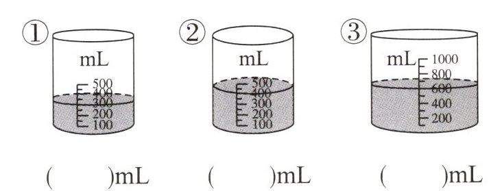 1. 向③号容器再倒入( )mL水就正好是1L。