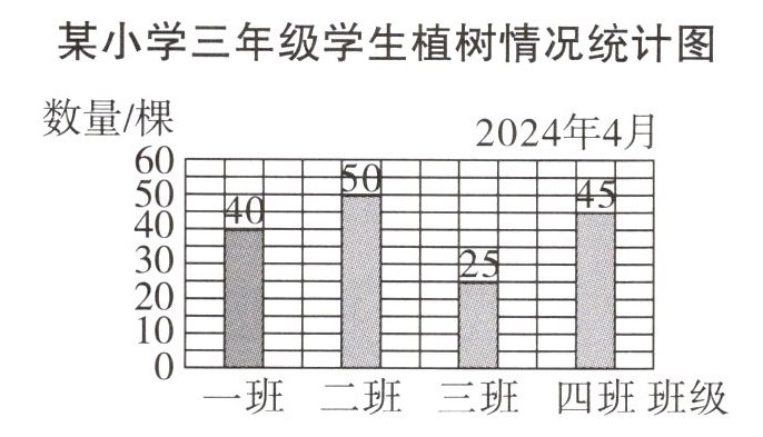 )班植树棵数最多。2. 三年级平均每班植树多少棵?