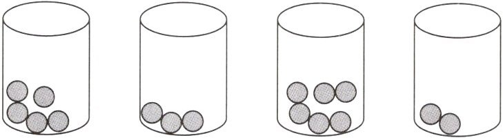 1. 移动下图桶里的小球,每个桶只移动一次,使每个桶里的小球数量都相同,并画箭头示意。