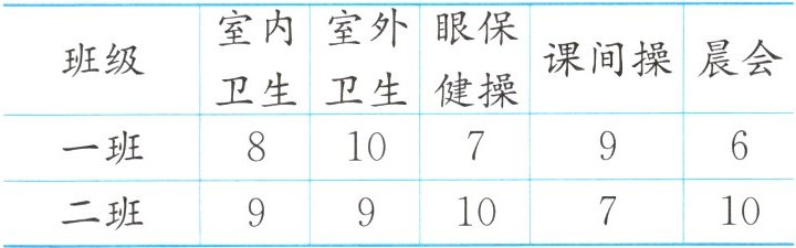 下面是一周内四年级两个班五项检查得☆的情况。(单位:颗)