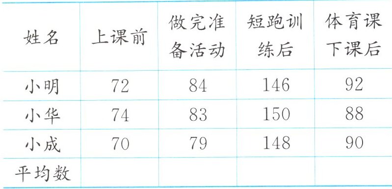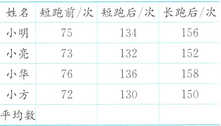 二、下面是四名同学运动前后1分钟脉搏次数的记录。