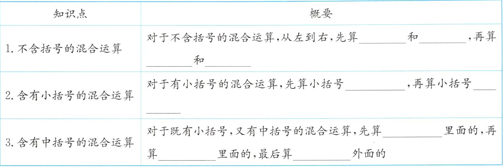 错因分析:错解错在过早地去掉了中括号。在计算时,一定要把中括号内的算式全部算完才能去掉中括号,否则运算顺序就会发生改变,结果也可能发生改变。
