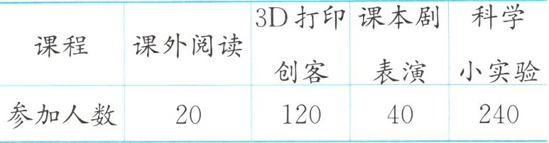(1)参加科学小实验的人数是参加课外阅读的多少倍?