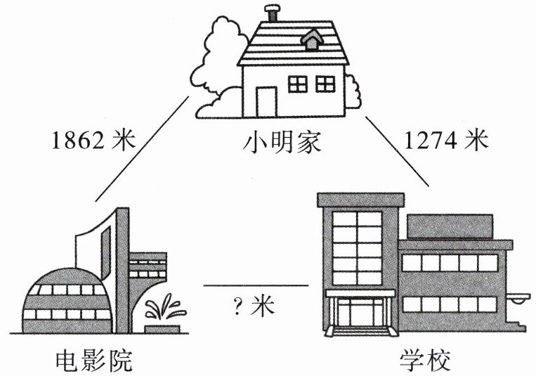 5. 小明从家步行直接去电影院比步行直接去学校多用了 12 分钟。如果他从学校步行直接去电影院用了 32 分钟,那么学校到电影院的距离是多少米?(假设小明每分钟行走的路程不变)(7 分)