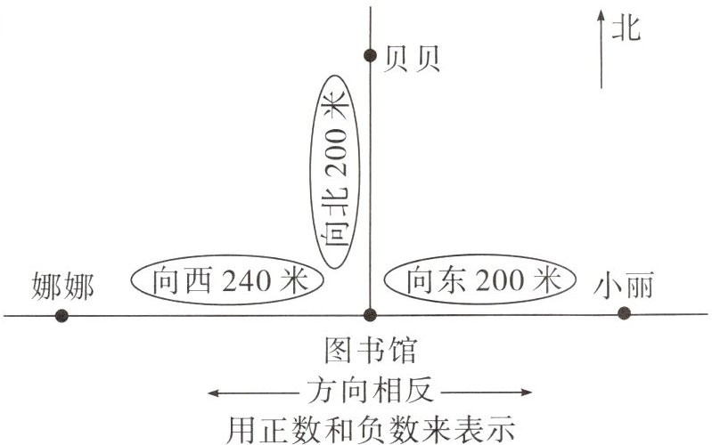 解答:如果娜娜向西走了 240 米,记作$+ 240$米,那么谁行走的路程可以记作$-200$米,为什么?