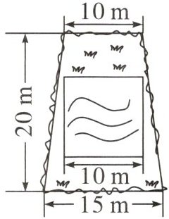 4. 第四组同学测量的绿地更特别,其形状和数据如右图,在一块近似梯形的地面中间有一个正方形的水池,其余都是绿地。请你帮他们算出绿地的面积大约是多少。