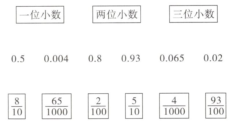 $\frac{2}{10}$ 0.2 $\frac{5}{100}$ 0.05 $\frac{6}{1000}$ 0.006 $\frac{3}{100}$ 0.03 $\frac{84}{100}$ 0.84
