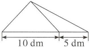 3. 如右图,将一个底是10dm的三角形底边延长5dm后,面积增加了$20dm^2。$原来的三角形的面积是多少$dm^2?$