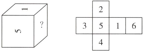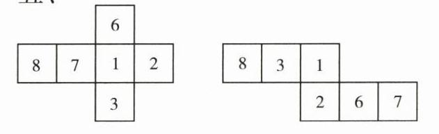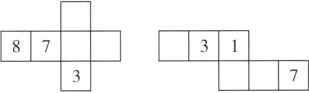 五、一个正方体,每两个相对面上的数字和是 9,下面是这个正方体的两个展开图,请在各个面上填上适当的数字。
