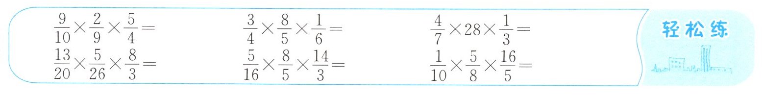 6. 计算$\frac{1}{10}×\frac{5}{8}×\frac{16}{5}$: