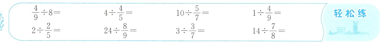 因为$a÷\frac{b}{c}=a×\frac{c}{b}(b\neq0,c\neq0)$,所以$24÷\frac{8}{9}=24×\frac{9}{8}$。