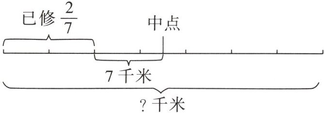 六、修一条公路,已经修了全长的$\frac{2}{7}$,离中点还有 7 千米,这条公路全长多少千米?