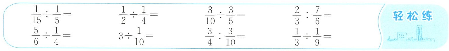 1. 计算$\frac{1}{15}÷\frac{1}{5}$: