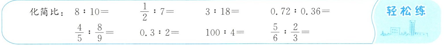 故答案依次为:$4:5$;$1:14$;$1:6$;$2:1$;$9:10$;$3:20$;$25:1$;$5:4$。