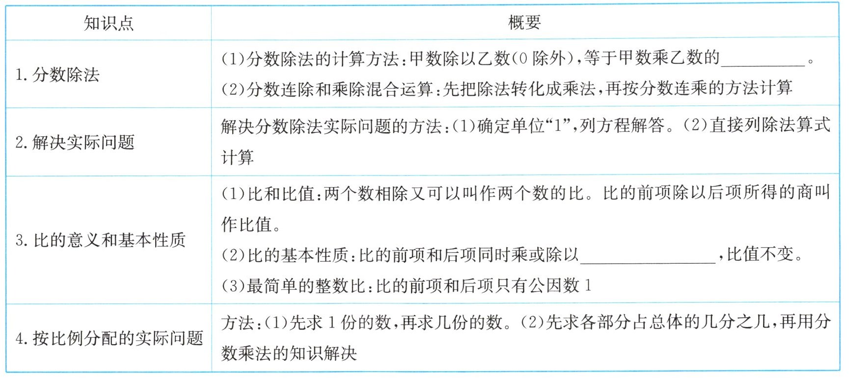 6. 计算$\frac{1}{6}÷\frac{2}{3}$: