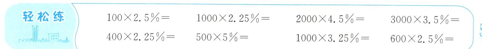 2. 李奶奶在银行存款 5000 元,定期一年,年利率是 2.25%,到期后的利息是 $ 5000× $(