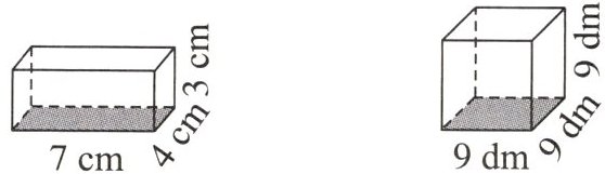 一、先计算下面长方体和正方体的底面积,再计算它们的体积。