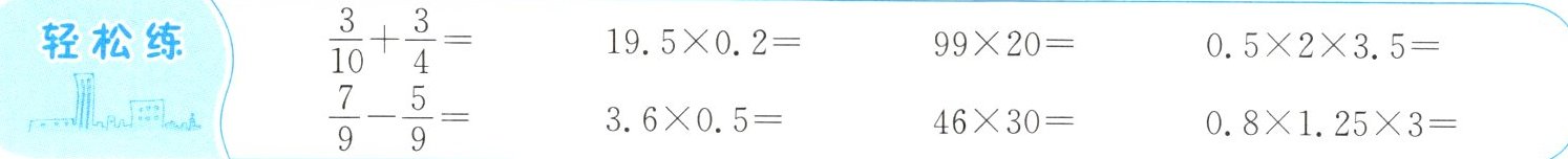 1. 计算$\frac{3}{10}+\frac{3}{4}$: