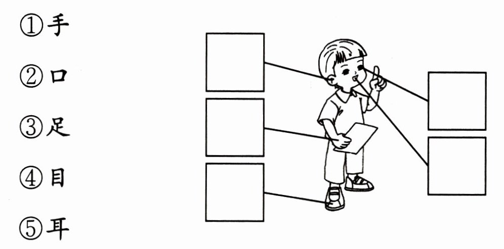 ①目 ②耳 ③口 ④足 ⑤手