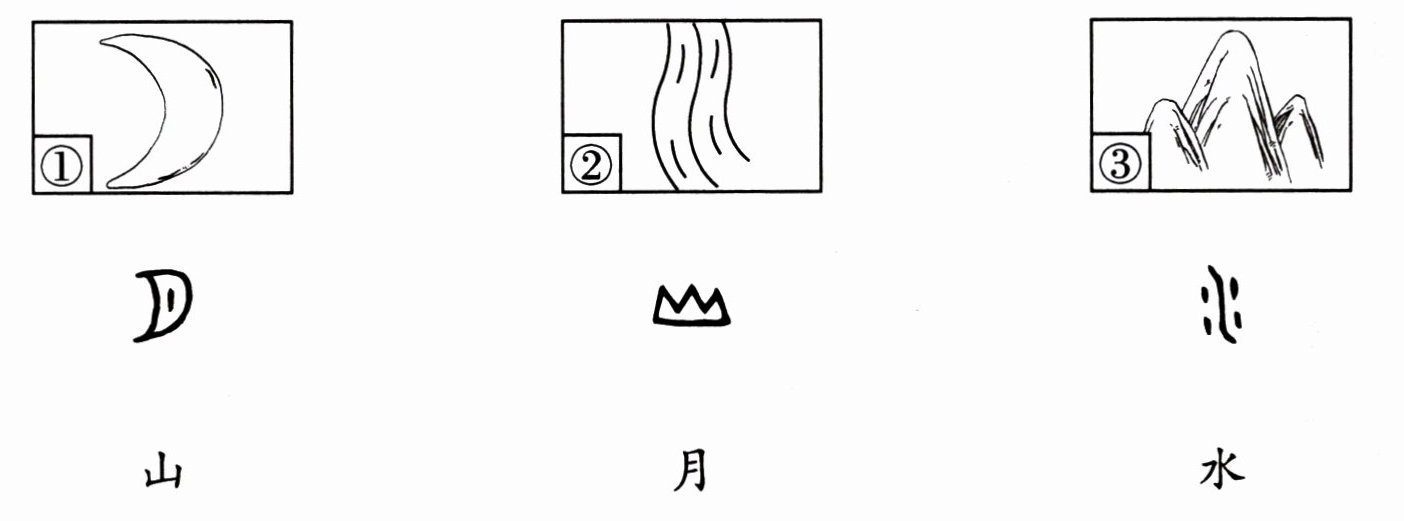 图①—![img alt=图片编号或题号(图片的具体编号或者所属题目的题号)]—月 图②—![img alt=图片编号或题号(图片的具体编号或者所属题目的题号)]—水 图③—![img alt=图片编号或题号(图片的具体编号或者所属题目的题号)]—山