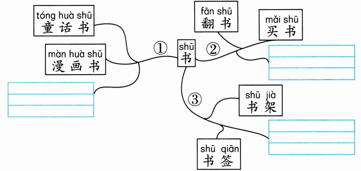 bēi bāo 示例:yǔ sǎn dǎng yǔ 2.(1)② ①(2)示例:①kē pǔ shū②kàn shū ③shū bāo