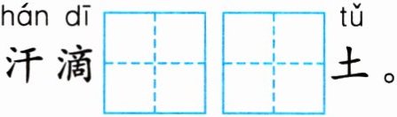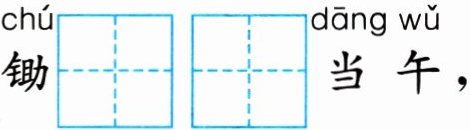 锄$\begin{array}{|c|}\hline chú \\ \hline\end{array}\\ \hline $$\begin{array}{|c|}\hline \\ \hline\end{array}$\begin{array}{|c|}\hline \\ \hline $当午,汗滴$\begin{array}{|c|}\hline hán \\ \hline\end{array}\\ \hline $$\begin{array}{|c|}\hline \\ \hline\end{array}$\begin{array}{|c|}\hline \\ \hline $tǔ