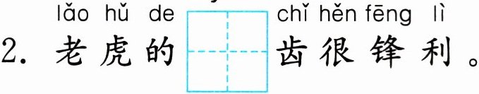 2. 老虎的$\overset{yá}{[□□□□]}$齿很锋利。