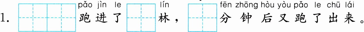 1. $\overset{xiǎo mǎ}{[□□□□]}跑进了\overset{zhú}{[□□□□]}$林,$\overset{jǐ}{[□□□□]}$分钟后又跑了出来。