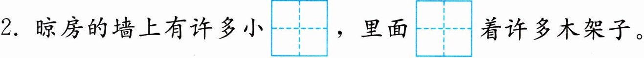 2. 晾房的墙上有许多小kǒng,里面dìng着许多木架子。