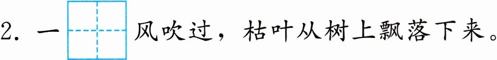 2. 一$\begin{array}{|c|}\hline zh\grave{e}n \\ \hline\end{array}\\ \hline $风吹过,枯叶从树上飘落下来。