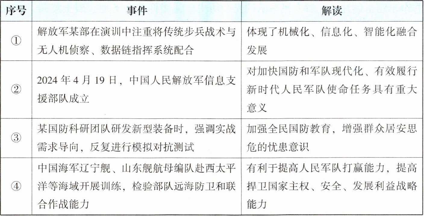 11. 新时代人民军队为适应国家安全需求,正以高水平治理推动高质量发展。以下事件解读正确的是(