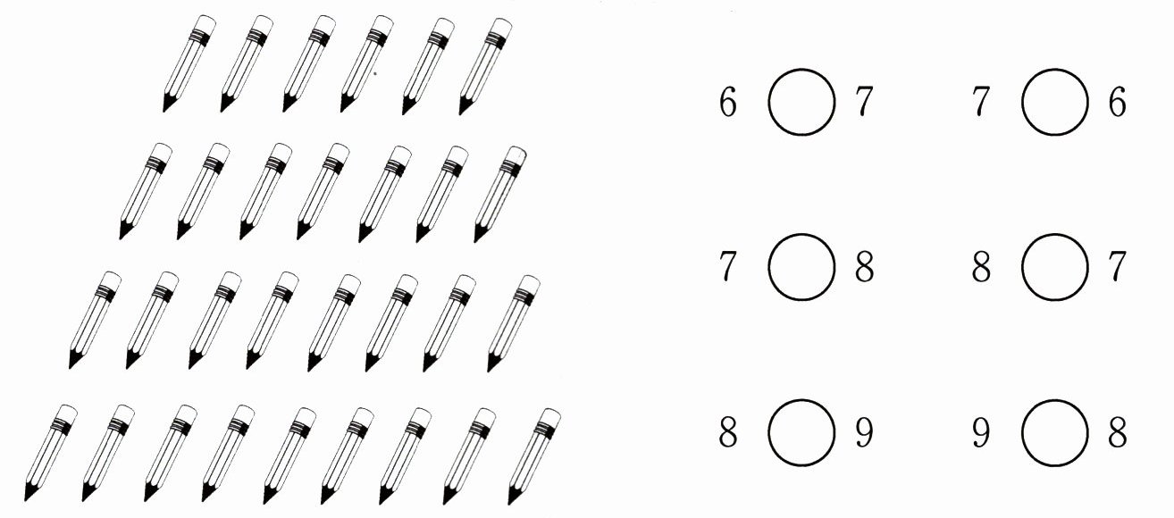 一 数一数,在$◯$里填上 “$>$” 或 “$<$”。