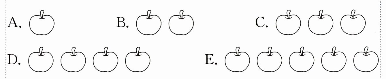 (2)序号为( )和( )的两堆苹果的数量合起来是7,用加法算式可以表示成: