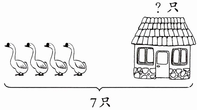 一共有$□只\overset{é}{鹅}$,左边有$□只\overset{é}{鹅}$,房子里有几只$\overset{é}{鹅}$?