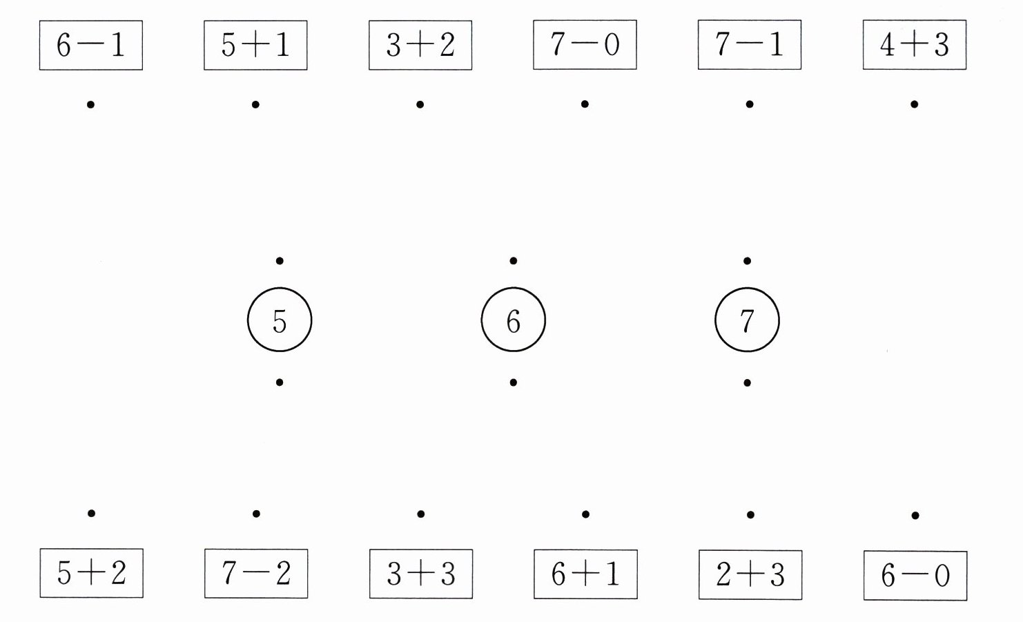 | $5 + 2$ | $7 - 2$ | $3 + 3$ | $6 + 1$ | $2 + 3$ | $6 - 0$ |