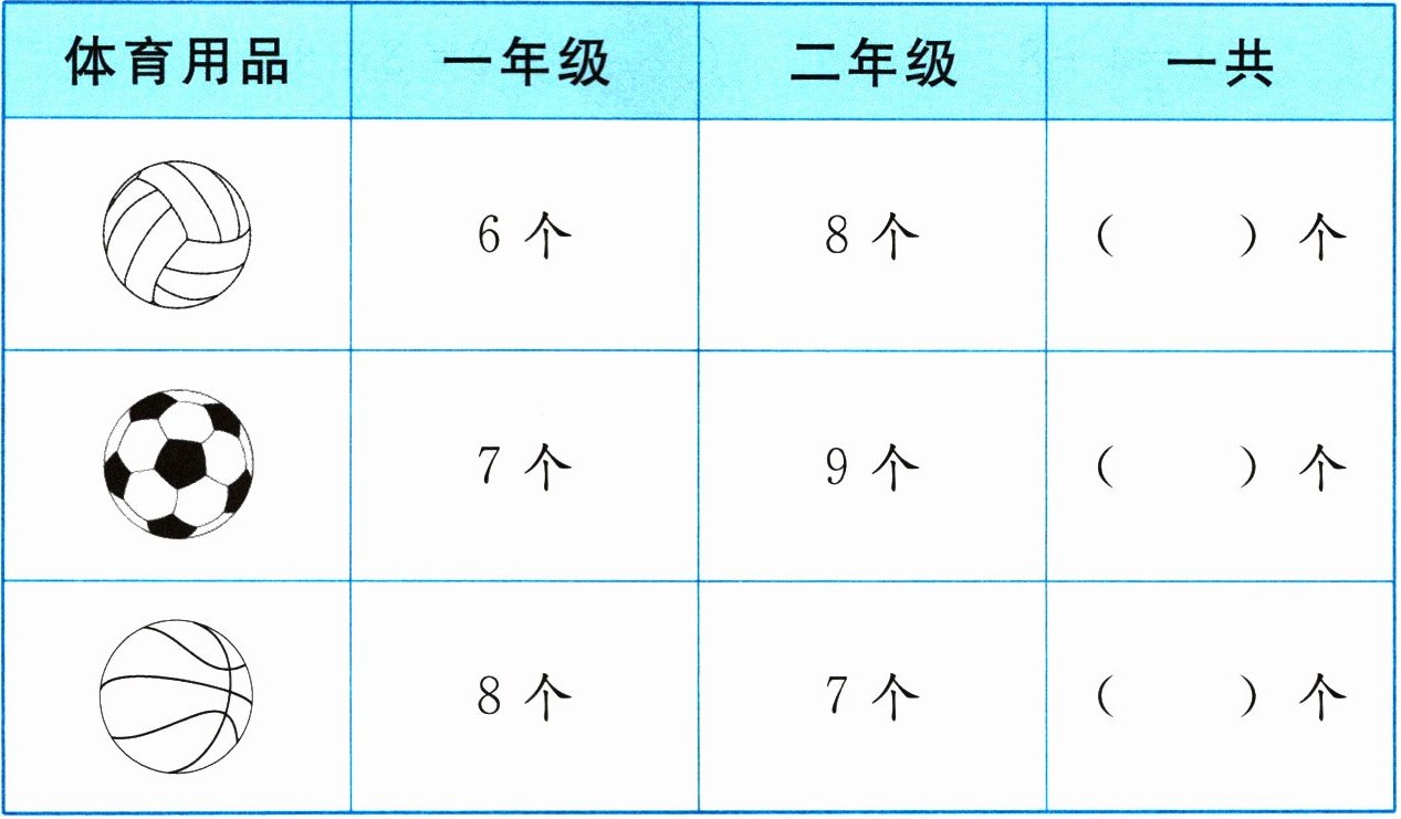 | 体育用品 | 一年级 | 二年级 | 一共 |