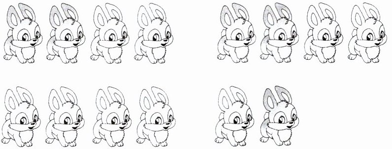 (2)白兔有( )只,灰兔有( )只,一共有( )只兔子。