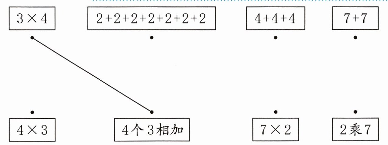 | $4×3$ | $4个3$相加 | $7×2$ | $2乘7$ |