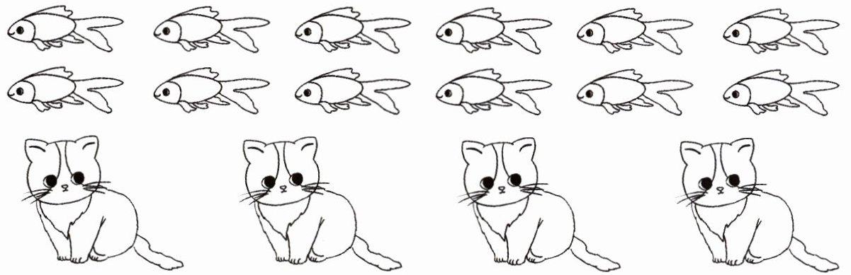 一共有( )条鱼,平均分给( )只猫,每只猫能分到( )条。