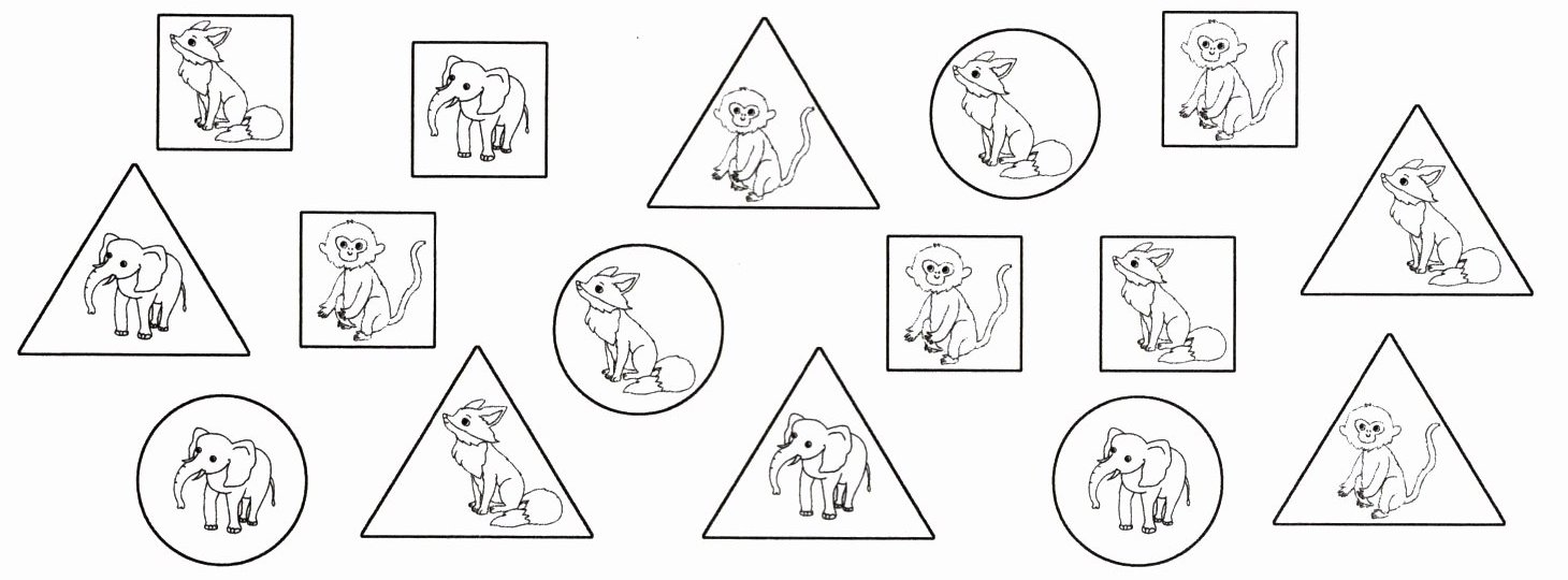 (1)形状 圆 正方形 三角形 张数 4 6 6 (2)略