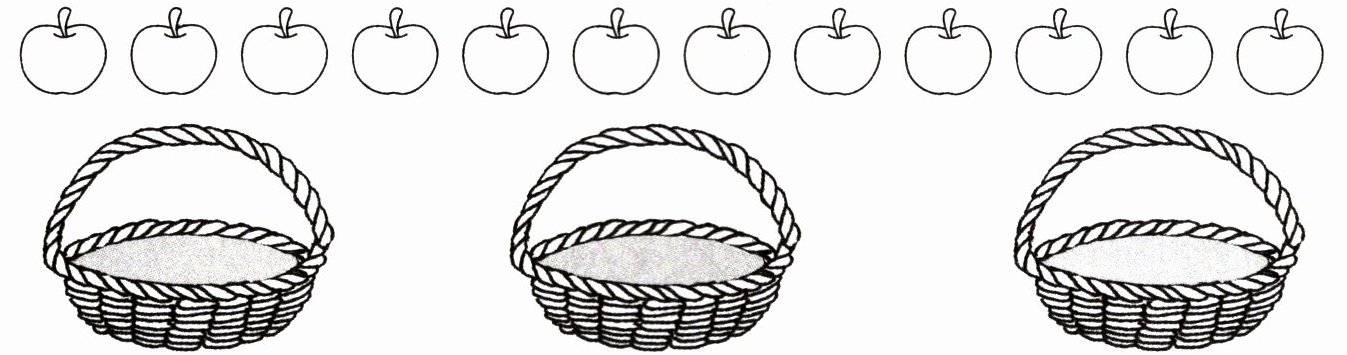 有( )个苹果,( )个筐,将苹果平均放在这些筐里,每筐放( )个。