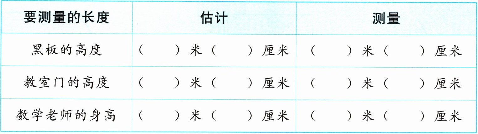 |教室门的高度|( )米( )厘米|( )米( )厘米|