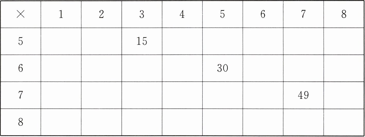 ( )×7= 28 8×( )= 40 6×( )= 36