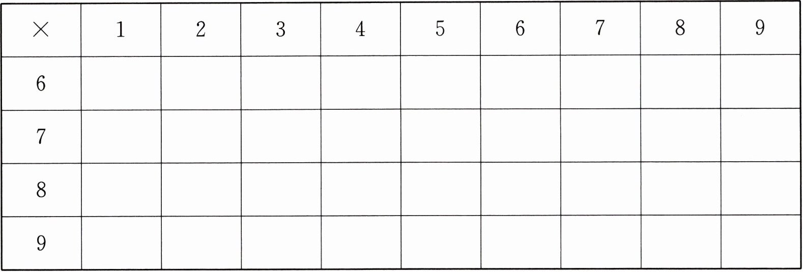 6 12 18 24 30 36 42 48 54 7 14 21 28 35 42 49 56 63 8 16 24 32 40 48 56 64 72 9 18 27 36 45 54 63 72 81