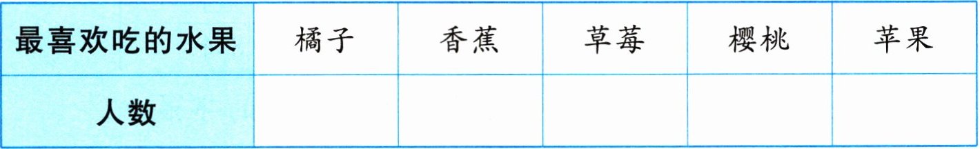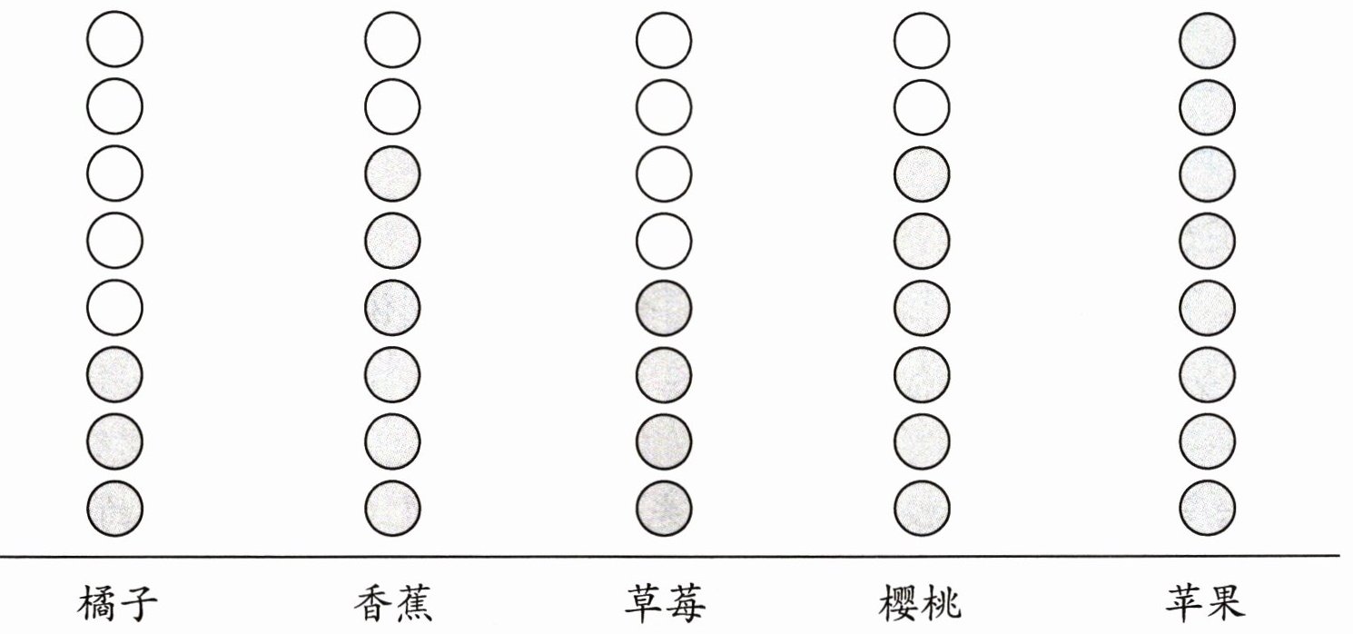 调查了二(1)班学生最喜欢吃的水果,得到的结果如下(每个$◯$代表1名同学,每名同学只选择1种水果)。