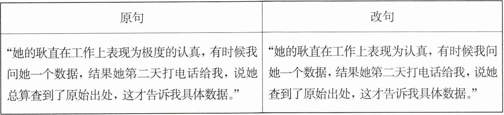 |“她的耿直在工作上表现为极度的认真,有时候我问她一个数据,结果她第二天打电话给我,说她总算查到了原始出处,这才告诉我具体数据。”|“她的耿直在工作上表现为认真,有时候我问她一个数据,结果她第二天打电话给我,说她查到了原始出处,这才告诉我具体数据。”|